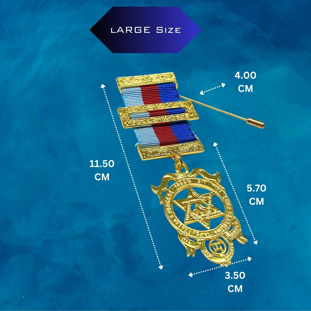 Perfectly combining tradition and craftsmanship, this Royal Arch Provincial Breast Jewel is sure to impress everyone in the Royal Arch community. The round-shaped jewel is attached to the eye-catching tri-coloured ribbon and features a star ensign. It is made to a high standard and gilt-plated to ensure durability. It can be worn with a ceremonial dress or full regalia. It’s suitable for gifting & purpose use.